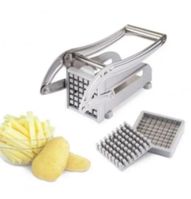 За допомогою різака для картоплі френч фрай ви можете легко та просто нарізати потрібну кількість картоплі фрі. Ви можете самостійно регулювати об’єм шматочка за допомогою насадки зі змінною сіткою. У пристрої використовуються ножі із високоякісної сталі, тому нарізка відбувається швидко та дуже легко.